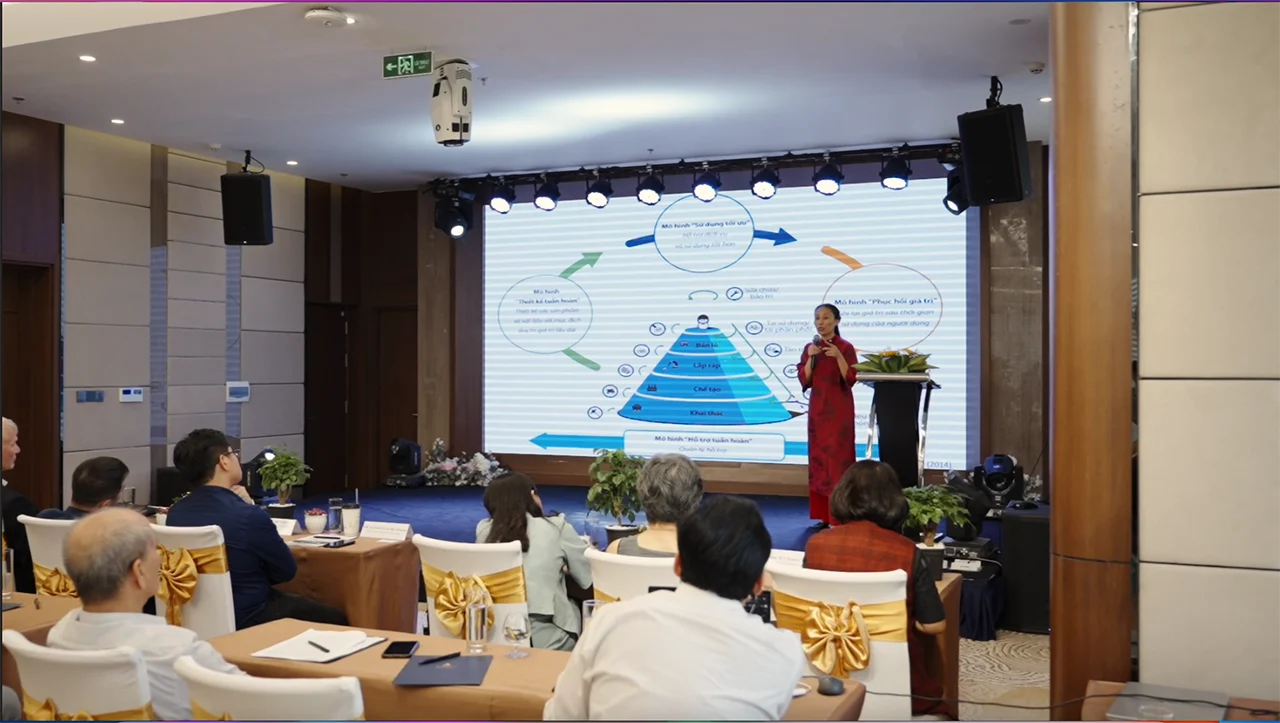 Diễn giả chia sẻ với các doanh nghiệp khởi nghiệp trong lĩnh vực kinh tế tuần hoàn
