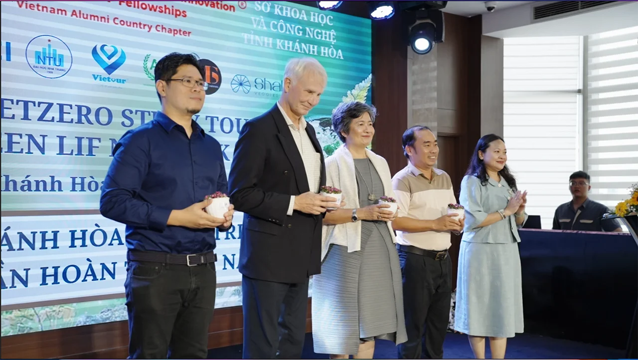 Giáo sư Benedikt, Hans-Peter và CEO Nguyễn Thu Hồng trồng cây gió bầu tại Khu Bảo Tồn Văn Hoá Trầm Hương Hoàng Trầm (Khánh Hoà) – Một trong những hoạt động ý nghĩa tại NetZero Study Tour